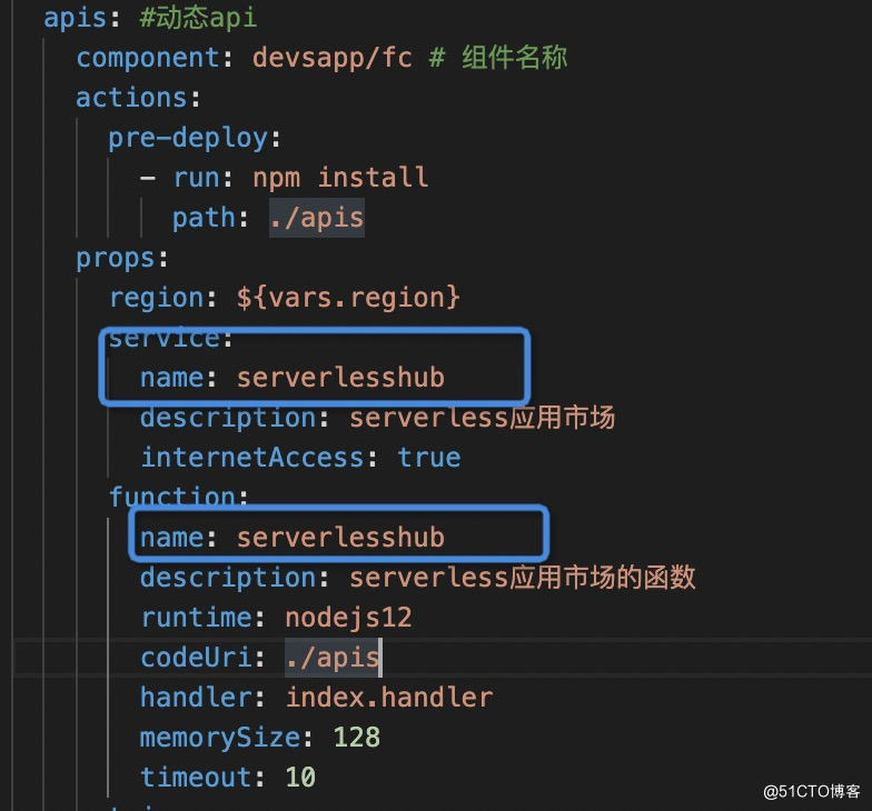 这个 Serverless 架构的工程主要包含 3 个部分: