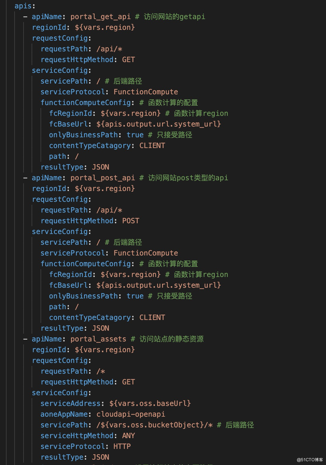 我们采用阿里云网关作为主流量入口,然后将动态请求转发给 阿里云函数计算,静态文件则交给 阿里云对象存储OSS 来处理。并在网关上做一系列的安全处理措施,如限流等。