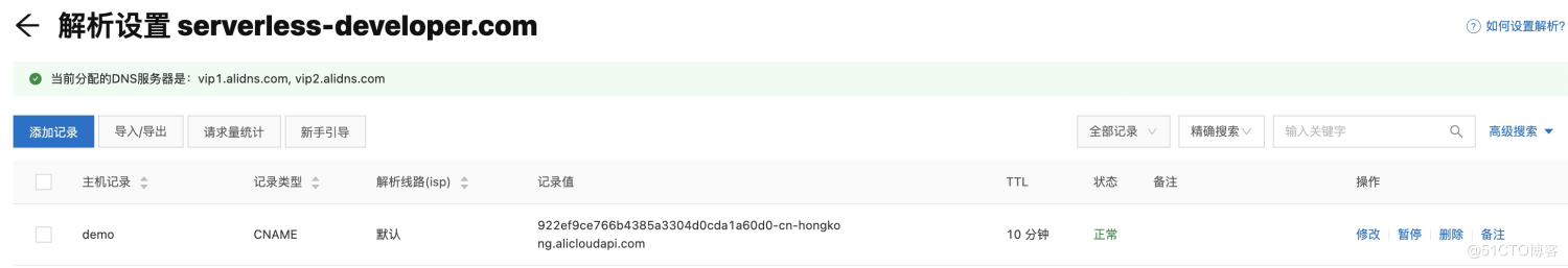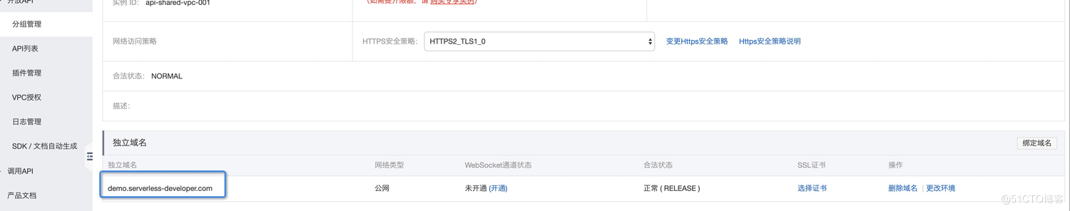 - myserverlessdemo 查看域名绑定,发现这部分其实是 ok 的;