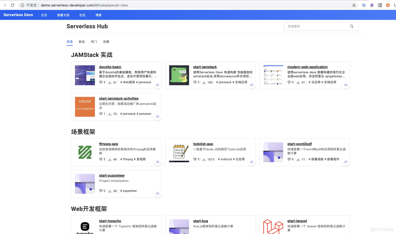 8)Serverless Hub: https://serverlesshub.resume.net.cn/#/hubs/special-view