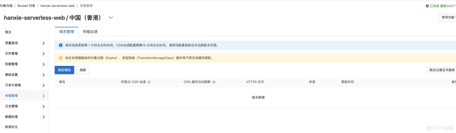 - 那么有可能就是 OSS 的域名未绑定成功,我们可以通过 OSS 控制台查看