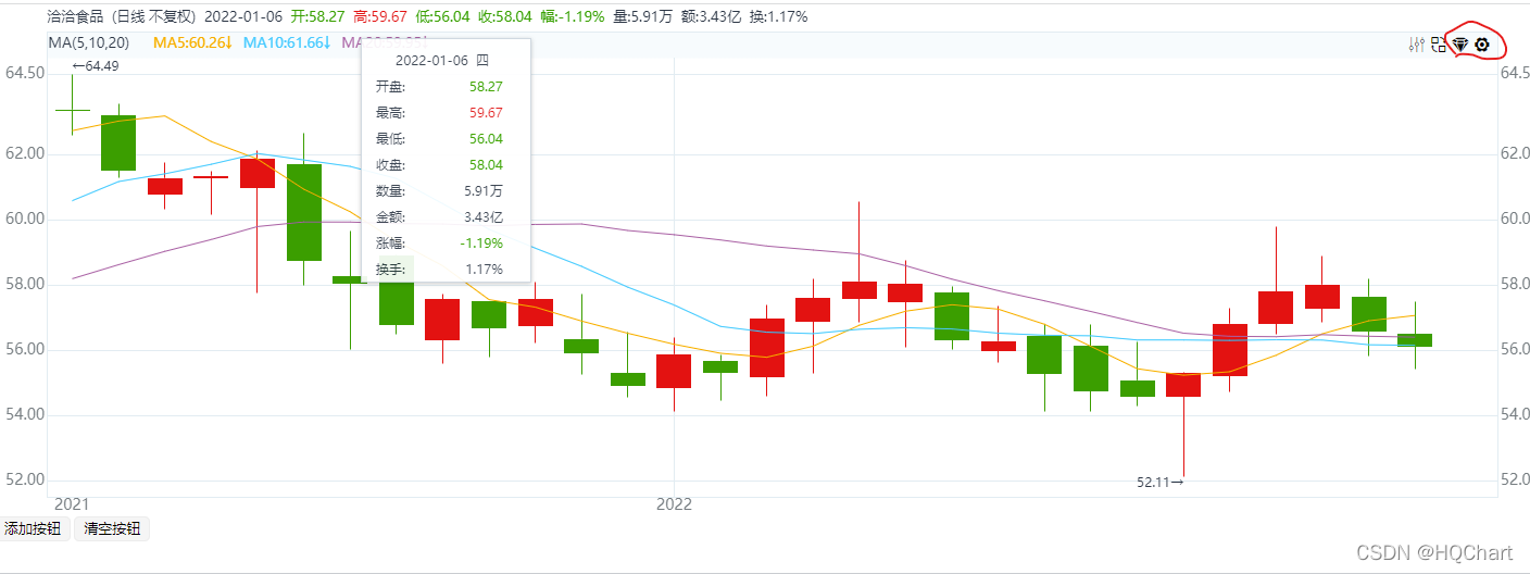 - 指标标题栏增加自定义图标按钮,详见教程 HQChart实战教程50-自定义指标栏工具按钮