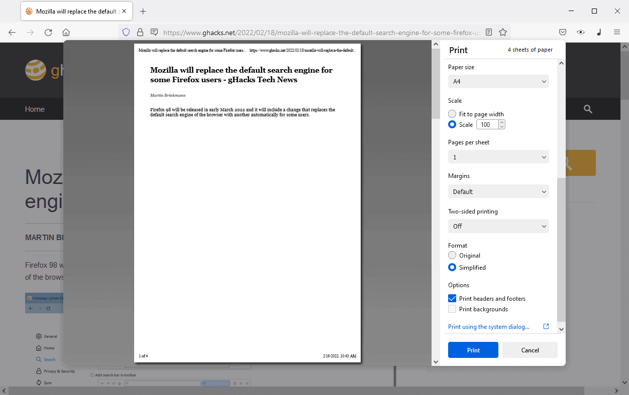 Mozilla 从 Firefox 中删除了旧版打印预览