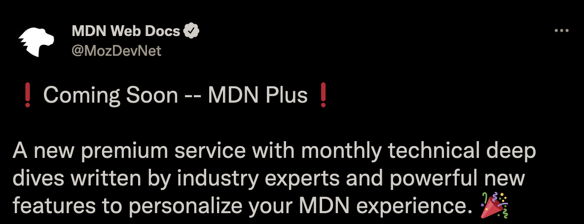 为了减少对搜索引擎提供商的依赖,以及持续提高订阅方面的收入,过去两年 Mozilla 推出了 Mozilla VPN 和 Firefox Relay Premium 这样的新产品,如今他们将目光瞄准了 Web 开发者,将推出 MDN Plus 高级服务。