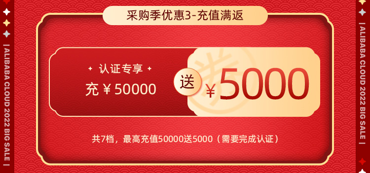 三:采购季优惠3—充值满返,共7档满返,最高满50000送5000
