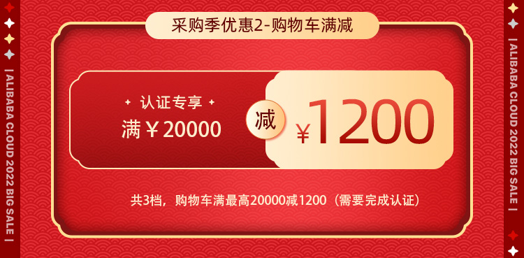 3月1日—3月31日,已经完成实名认证的阿里云新老用户可在主会场领取,仅用于产品新购订单,购买2种以上产品可用,低于5折不可参与满减,订单时长≤1年,每个用户仅可享受1次。