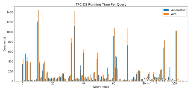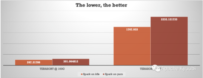 从原理上,无论是 Kubernetes 和 YARN 都只起资源调度的作用,不涉及计算模型和任务调度的变化,所以在性能上的差异应该是不显著的。从部署架构上,Spark on Kubernetes 一般选择存算分离的架构,而 YARN 集群一般和 HDFS 耦合在一起,前者会在读写 HDFS 时丧失“数据本地性”,这个由于网络带宽因素影响可能会影响性能。从存算耦合架构诞生之初经过10年左右的发展,随着网络的性能增长,各种高效的列式存储格式及压缩算法的加持,这点影响微乎其微。