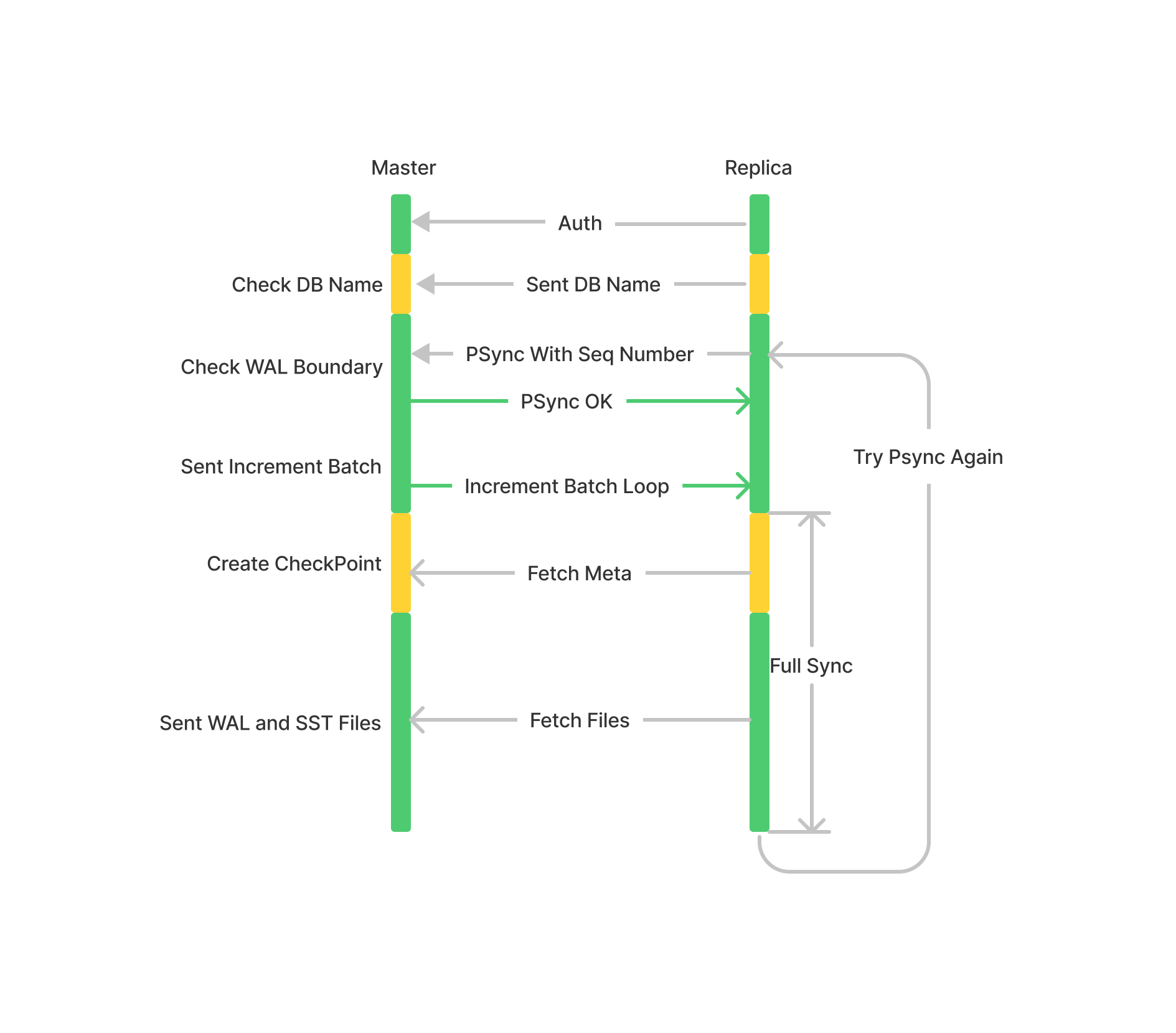 GetUpdateSinceAPI 将 Sequence 之后的写入批量同步到从库。否则,进入全量同步 (Full Sync) 流程; -