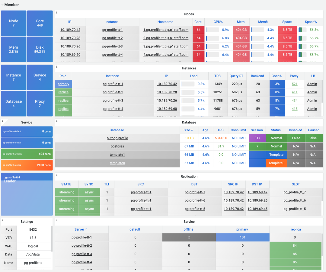 探探主生产环境的Pigsty部署:96集群12688核的PostgreSQL OLTP集群。