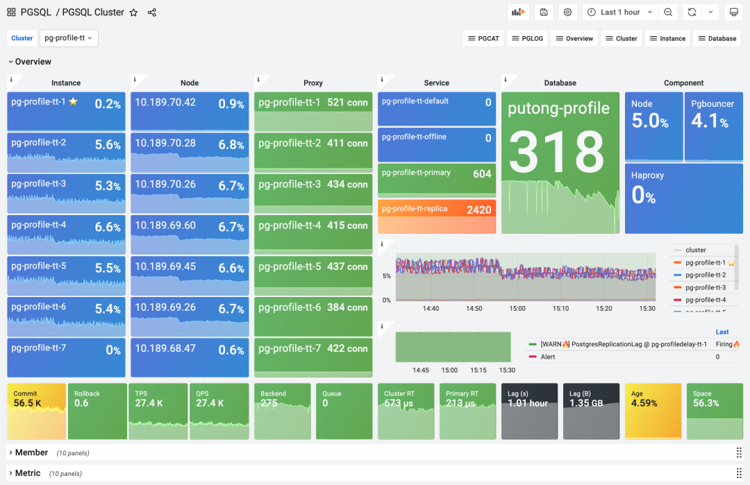Pigsty v1.4 提供了对新数据库种类的监控支持,但对于经典的PostgreSQL监控也没有落下。在1.4中,大量PGSQL的监控面板进行了调整与重置,最具有代表性的就是PGSQL Cluster面板。