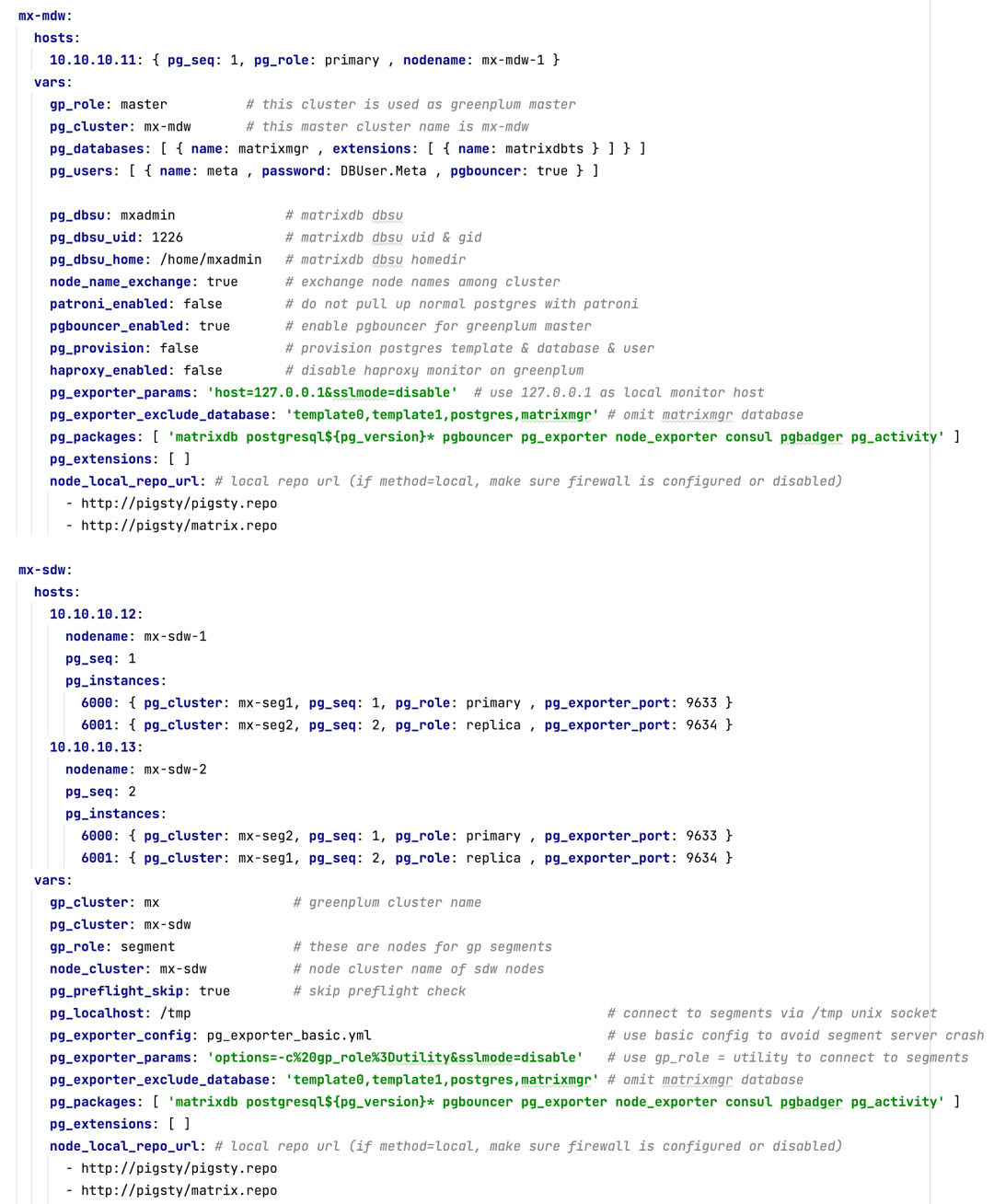 gpsql.yml 是新增的,用于部署MatrixDB的剧本(实际上是Greenplum 7的超集),目前仍然处于Beta阶段,可以对MatrixDB/Greenplum提供基本的部署与安装支持。