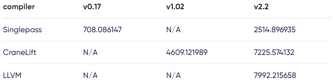 详细性能基准测试结果:https://wasmer.io/posts/wasmer-2.2
