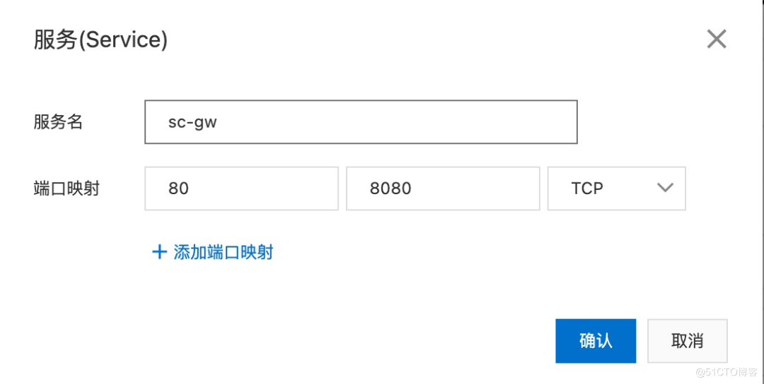在部署完成的应用详情页面,支持进行应用的访问方式配置,在这里可以选择为入口应用绑定 LoadBalancer 类型 Service 以直接对外访问,也可以创建 ClusterIP 类型 Service,如下图: