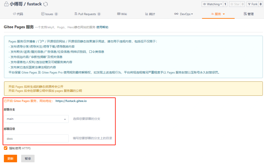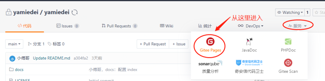 从 服务的Gitee Pages进入即可进入配置博客页面。 -
