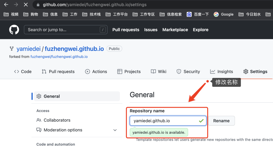 注意:你必须把 fuzhengwei.github.io修改为你的名称xxx.github.io这里的 xxx 就是你的GitHub的名称,也是 https://github.com/{xxxx} 链接后面的名称,不要修改错了,否则你就失败了。