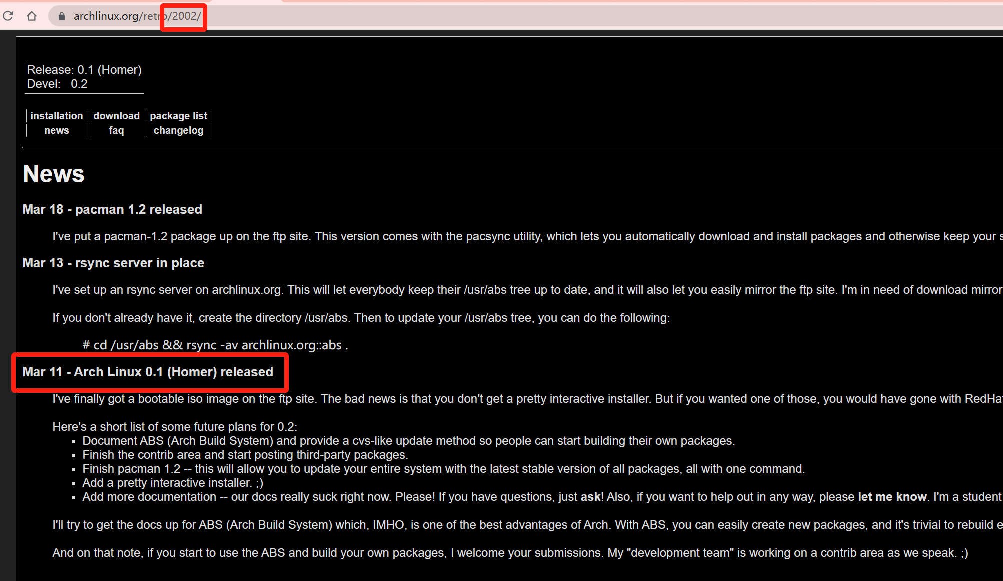 2002 年 3 月 11 日 , Arch Linux 发布了 0.1 (Homer) 版本,距离第一个版本至今已满 20 周岁。