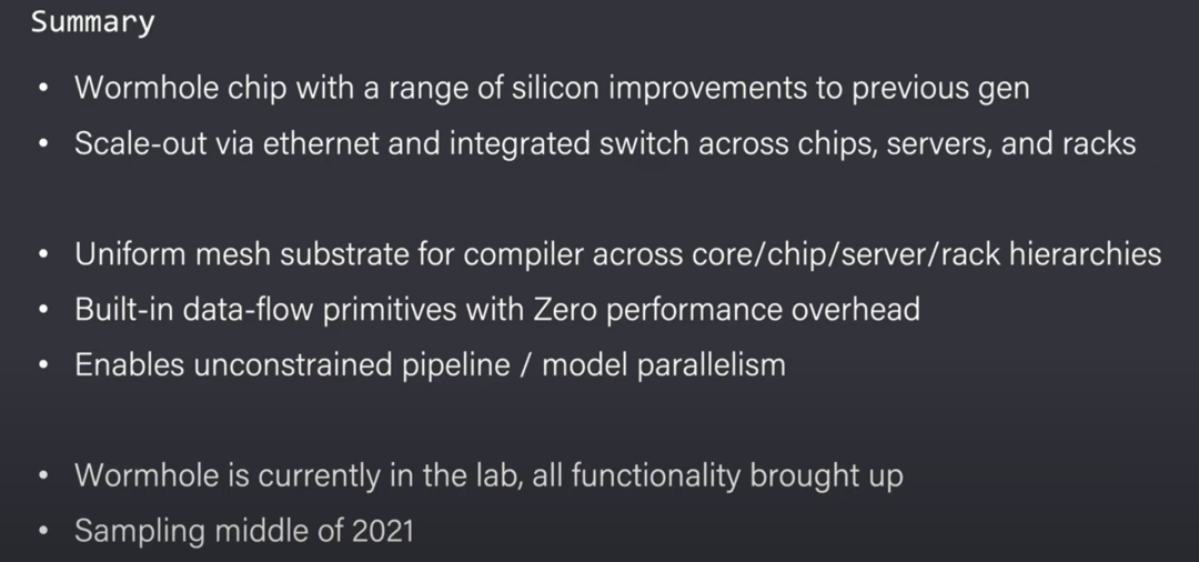 袁进辉——Tenstorrent由于“硅仙人”Jim Keller的加入和其别具一格的架构设计而备受关注。2021年6月,Tenstorrent 的主创Drago Ignjatovic 和Davor Capalija在Linley Group做了题为《 Tenstorrent: Scale-Out-First Microarchitecture for Efficient AI Training 》的演讲( https://www.youtube.com/watch?v=Id3enIOAY2Q&t=8s ),分享了Tenstorrent的技术理念、产品和愿景,分析师Dylan Patel对这场报告做了剖析,我认为这是一份很有价值的内容,故翻译到中文社区希望更多同仁看到。