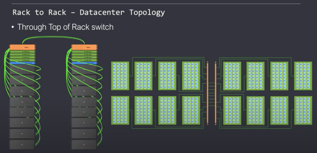 每个服务器顶部的交换机只用于将这些服务器连接到外部世界,而不是在网络内部。英伟达的解决方案需要转换到8 GPU以上的规模,代价巨大,超过16 GPU的规模需要使用更昂贵的英伟达网卡和交换机。
