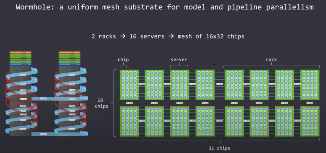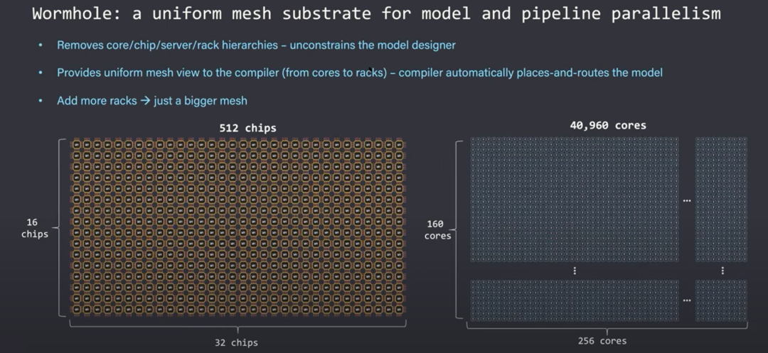 尽管包含许多芯片、服务器和虫洞芯片机架,但软件本身好像只看到由计算核心构成的网格。