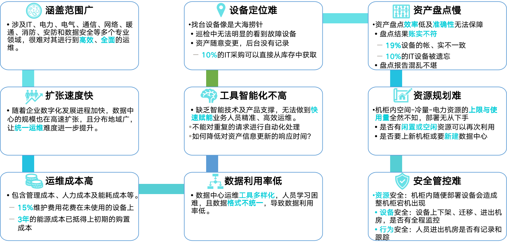 此外,当前阶段数据中心管理仍面临以下三大类问题: