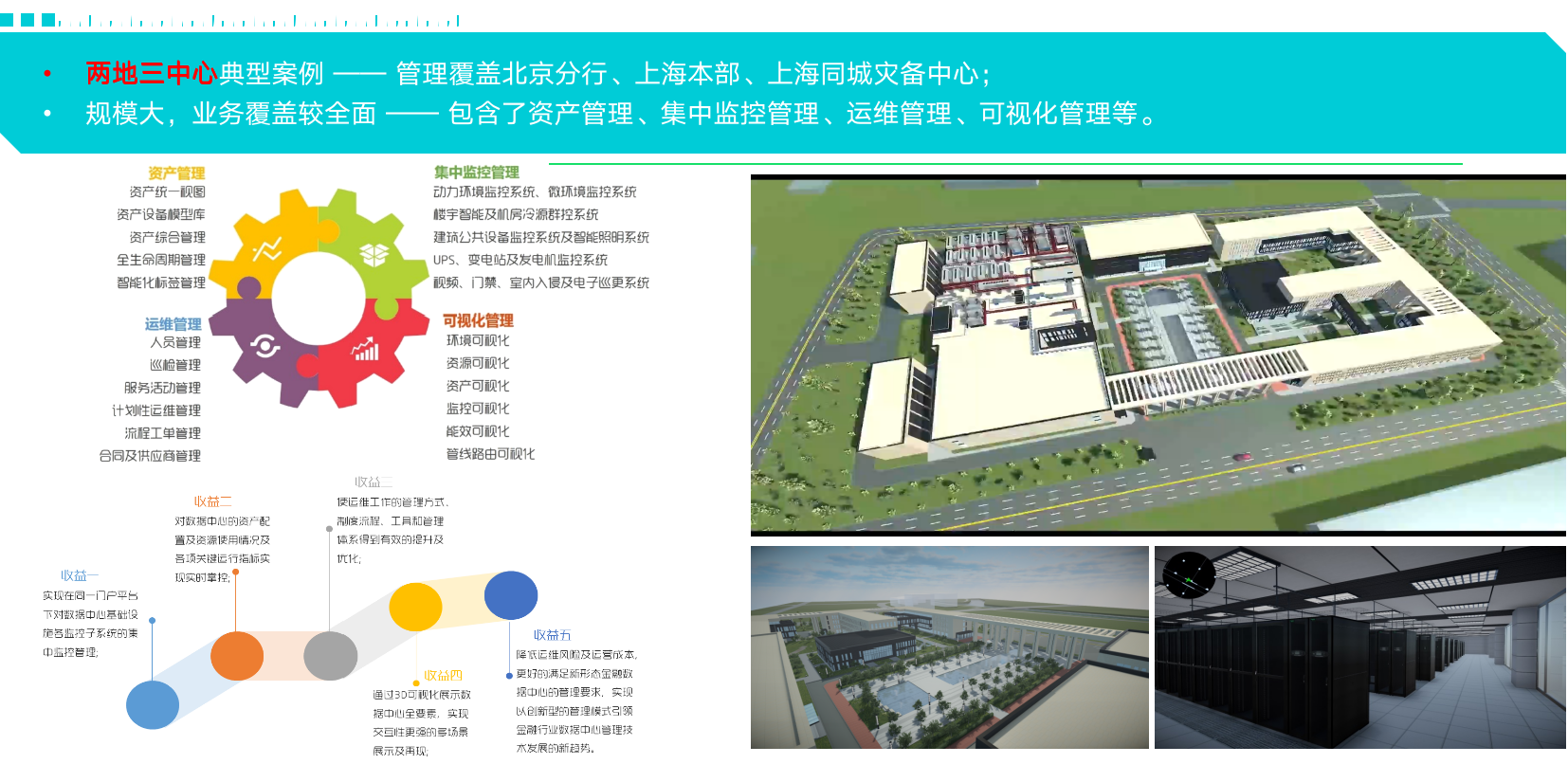 统一营维平台是将数据中心内包含的资产、容量、线缆、供电、制冷、能耗、环境、微环境、运算等资源进行了有效整合与利用,实现了跨专业、跨区域、跨范围的资源整合与管理。 此外,结合自有精确到U级定位硬件,通过灵活可配的流程管理引擎,对各形态资产从验收到报废全运维生命周期的状态及位置进行实时评估和跟踪,从而实现资产管理的精细化、标准化、无纸化,以此保证资产数据的持续准确有效,降低人为操作风险。