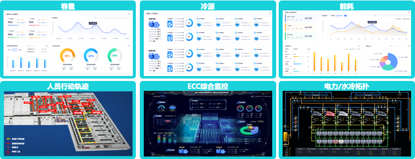 云智慧解决方案通过外部采集设备、设施进行数据整合,并通过后台AI算法计算出数据中心实时的PUE、CLF、PLF、WUE等能耗指标;此外,还可以按设备类型、机房区域等方式进行分类统计分析,必要时可形成热度图、趋势图。与此同时,系统能够将能耗成本、能耗组成情况进行ECC大屏等多种形式展现,同时可根据变化趋势及时地进行信息预判,结合特定的算法模型分析效率损失的原因,协助企业从整体上改善效能。