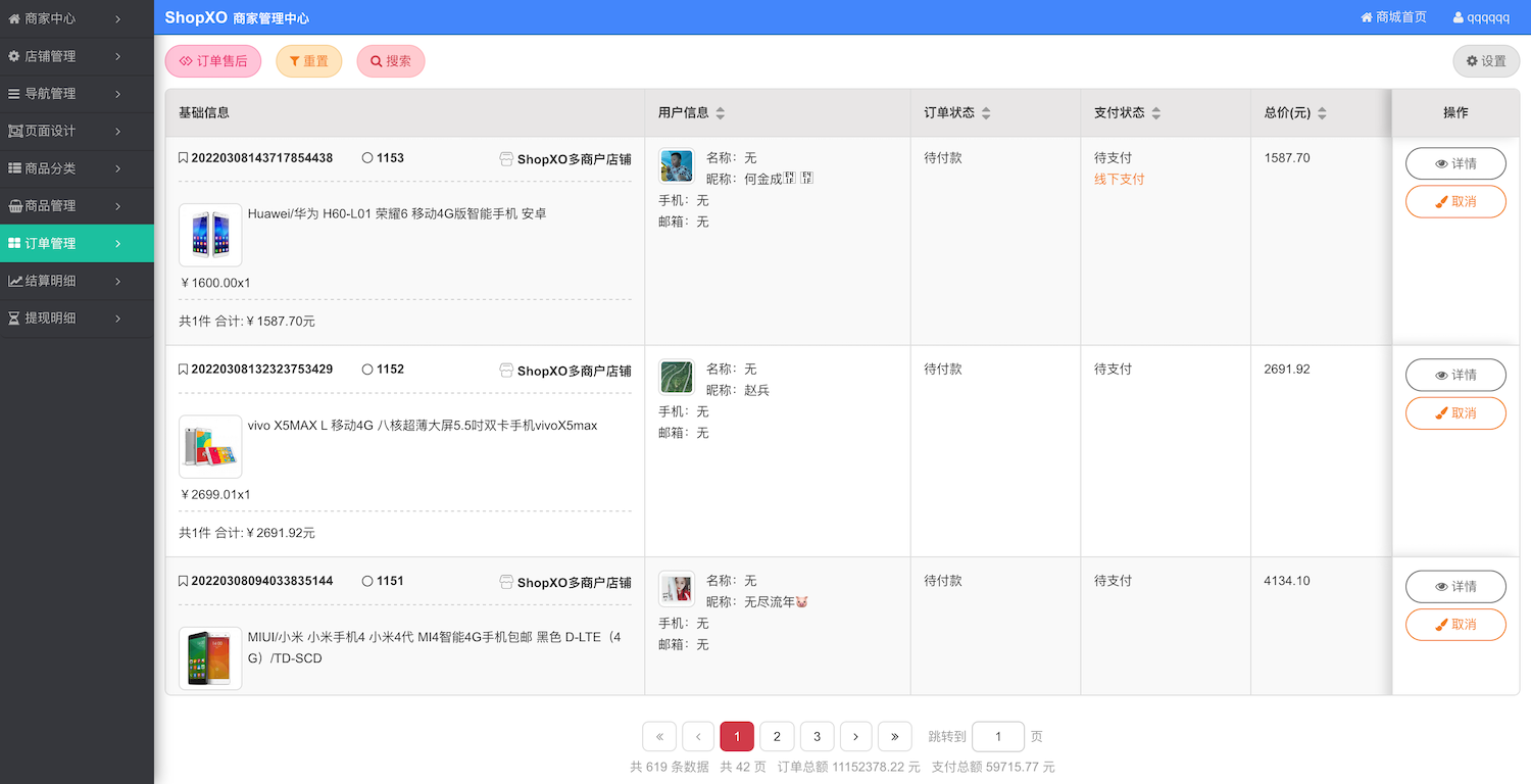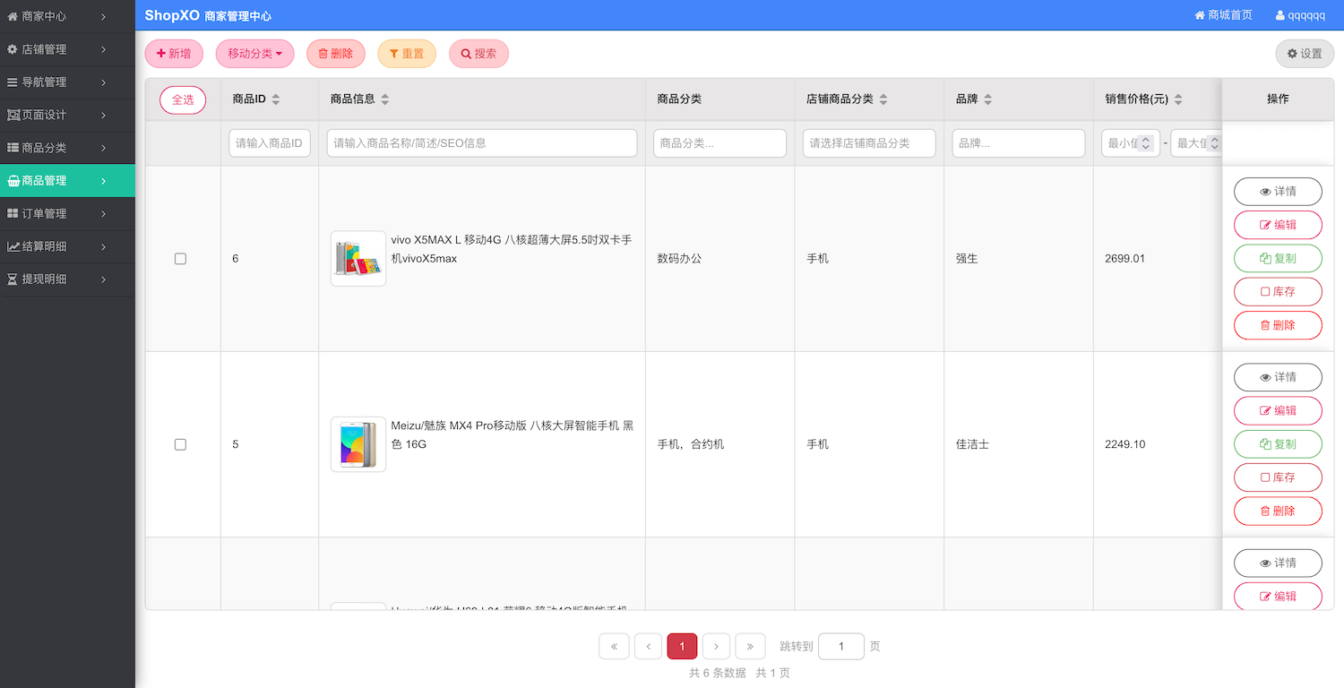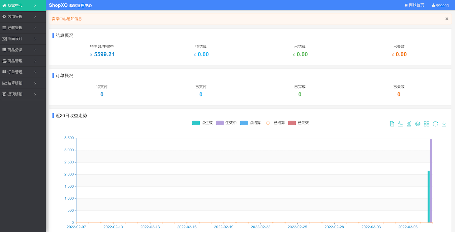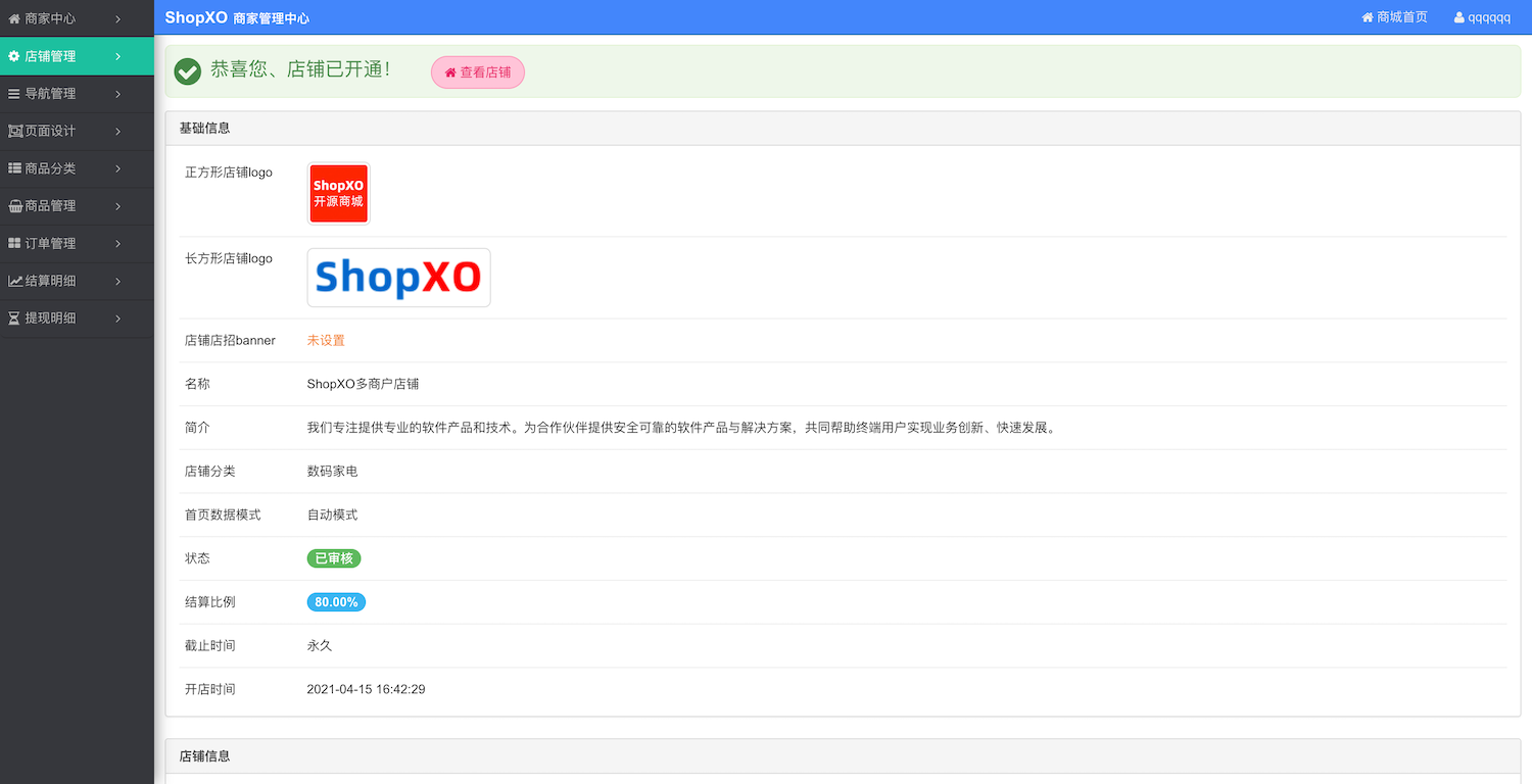商家入驻、独立店铺、可视化DIY拖拽装修+页面设计、不同商家自动拆单,店铺、商品、分类、结算、订单管理、数据统计