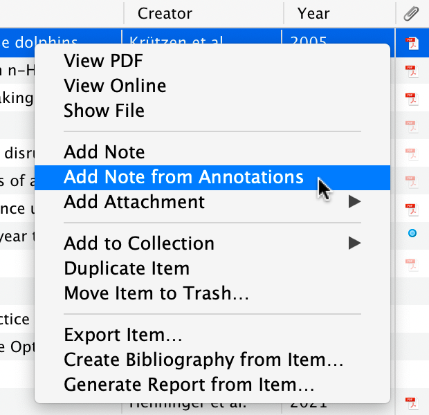 标记 PDF 后,你可以快速将部分或全部注释添加到 Zotero note。