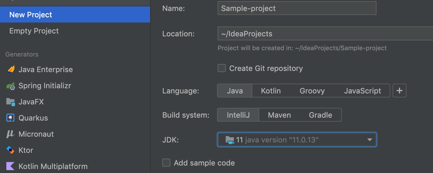 作为 新建项目 向导 UI 改造的一部分,EAP 6 引入了一个新的工作流程来启动新的 Java 项目: