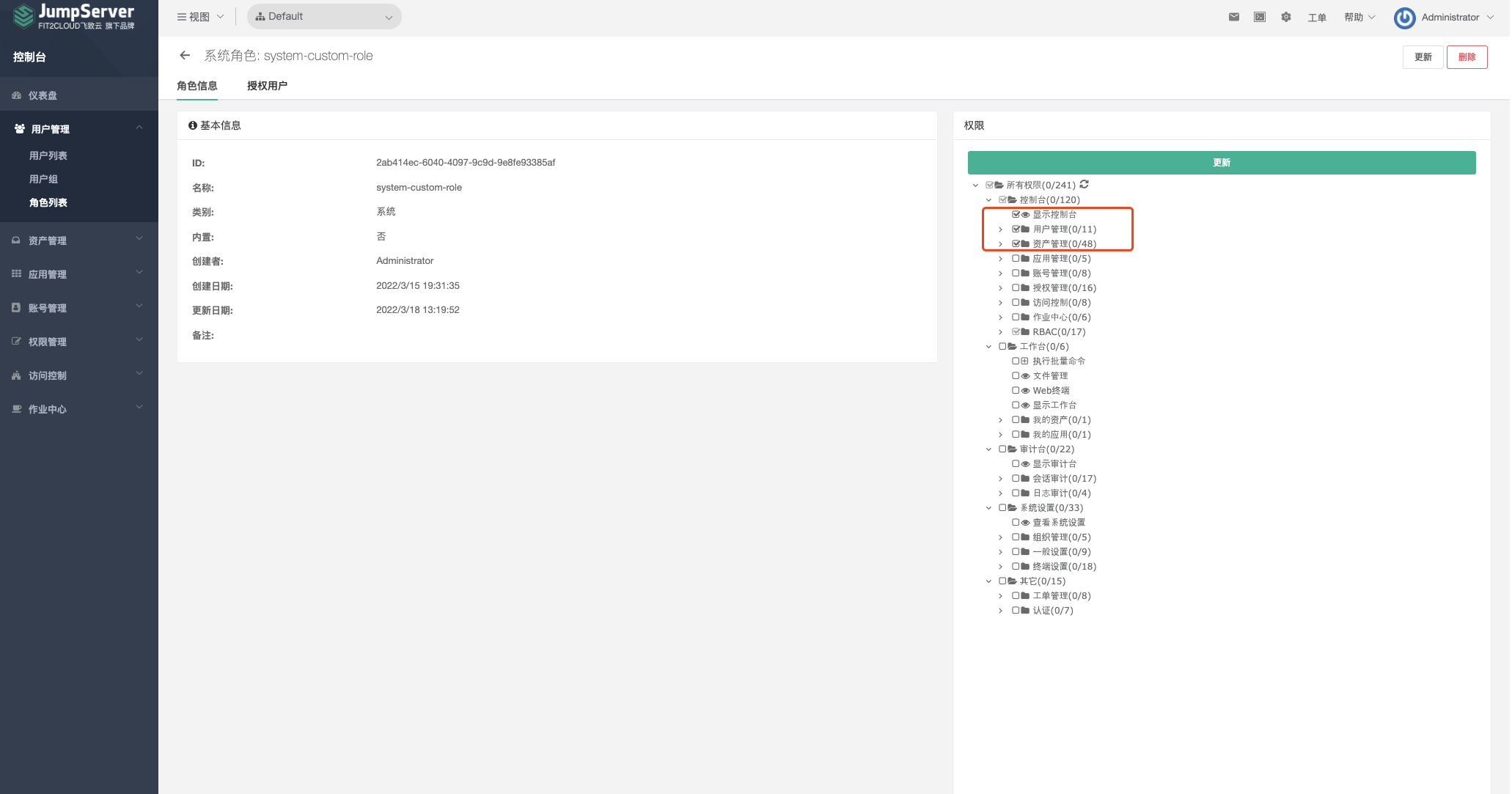基于角色的权限访问控制在JumpServer社区版和企业版中具有一定的区别: