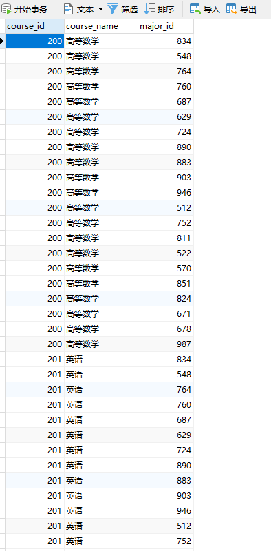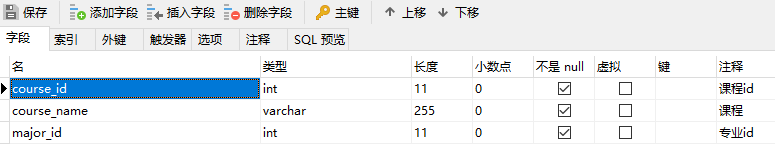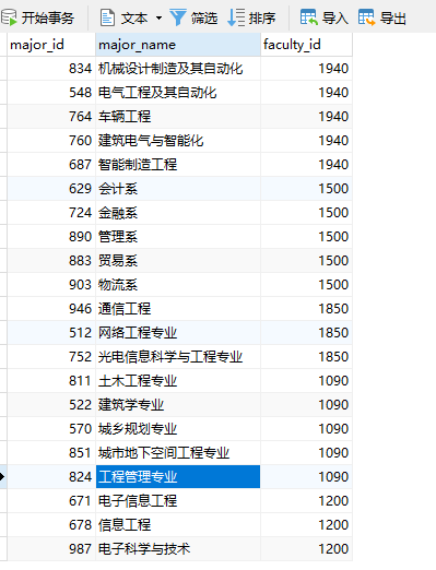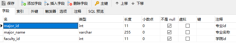 ■ 专业表:major,包含21条数据。