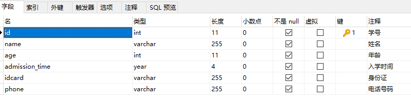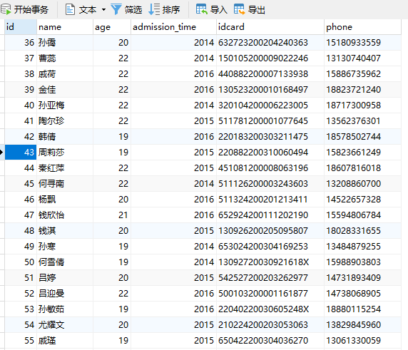 ■ 学生表:student,包含10000条数据。