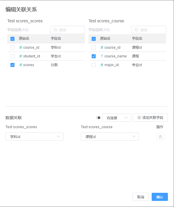 在DataEase开源数据可视化平台中关联数据集制作宽表