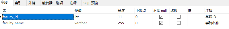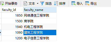 ■ 学院表:faculty,包含5条数据。