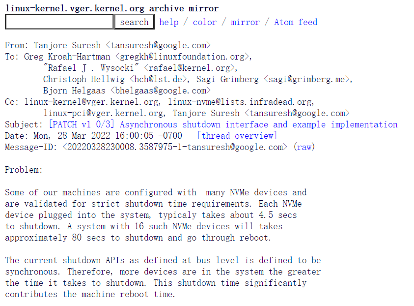 借助异步 shutdown 接口并调整 NVMe 驱动程序以使用它,其重启以及最终的服务器 down time 可以轻松减少一分钟。