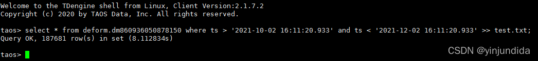 select * from deform.dm860936050878150 where ts > '2021-10-02 16:11:20.933' and ts < '2021-12-02 16:11:20.933' >> test.txt;
