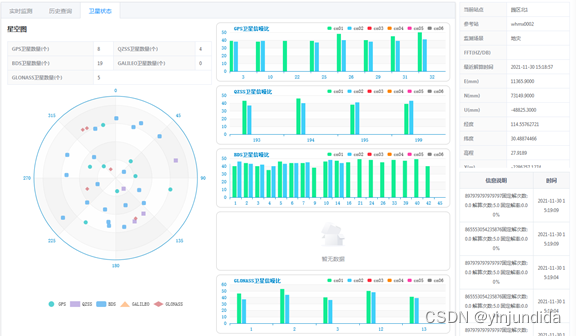 数据显示预警系统负责对解算出的监测点位置坐标进行集中和图形化显示,根据解算结果自动生成形变历史曲线、卫星分布图、载噪比柱状图,实时展现各监测点的实时状态,并根据预设的警戒值进行风险判别,以声光、短消息等形式进行多渠道预警信息发布,及时将灾害发生的实时状况反映到相关管理部门。