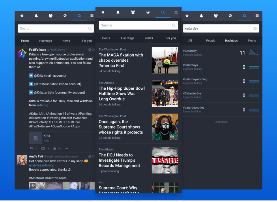 - 增加“探索”页面,内容包括当前流行的帖子、用户经常分享的新闻故事、流行的标签,以及推荐值得关注的用户