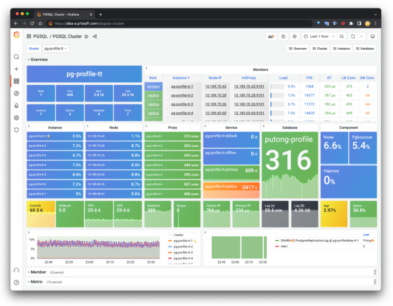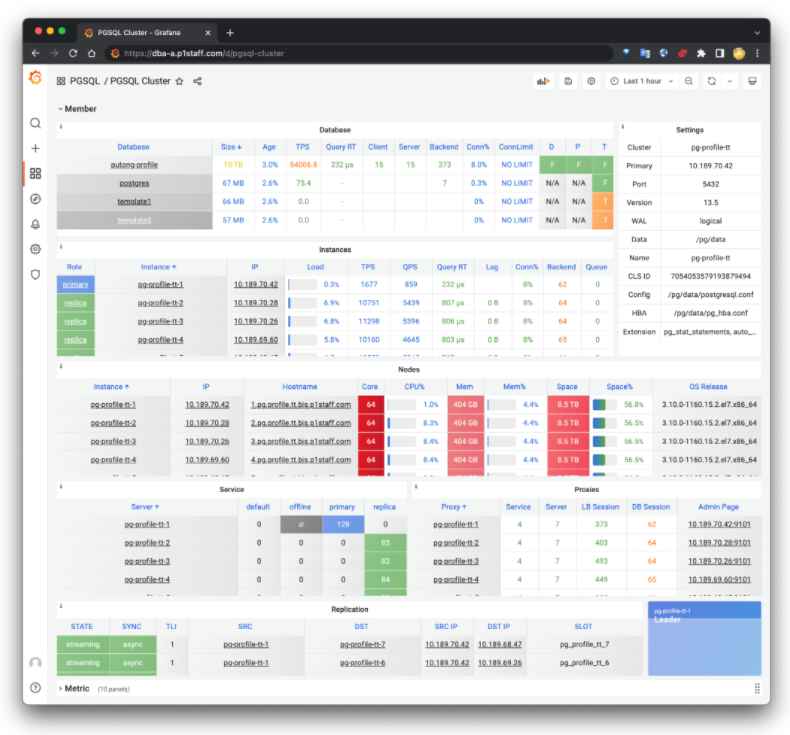 探探主生产环境的Pigsty部署:240实例13400核的PostgreSQL OLTP集群。