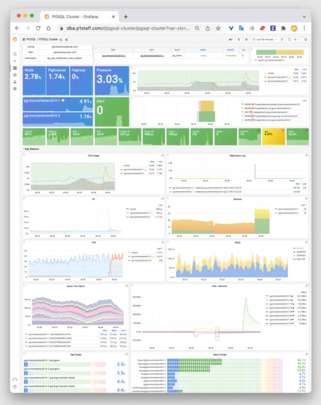全新的 PGSQL Cluster 监控面板首屏