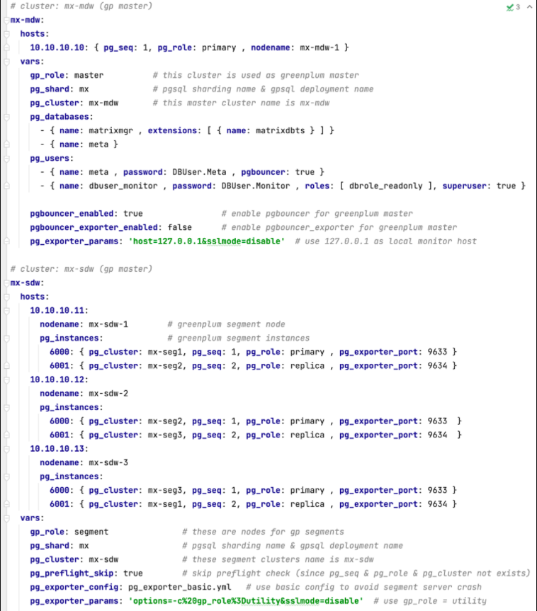 定义上面的4节点MatrixDB只需要这些配置
