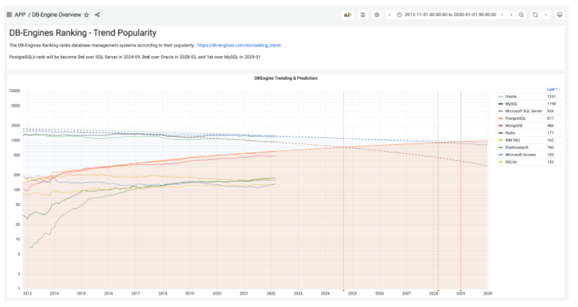 DBEng Trend: 使用权威网站DBEngine流行度趋势数据,预测PostgreSQL什么时候会成为世界上最流行的关系型数据库。