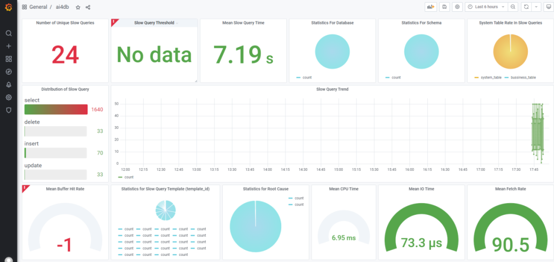 如上文所述,在openGauss 3.0.0版本中,创新性地完成了对历史AI能力的整合,丢弃历史研发过程中遗留下的包袱,轻装上阵,创新性地实现了可服务化、可离线式、插件式、自由组装的DBMind平台,并跟随数据库安装包一同发布。对于诊断后的结果,用户可以自行采用Grafana等工具进行自定义地可视化(当然,我们也会提供Grafana示例)。