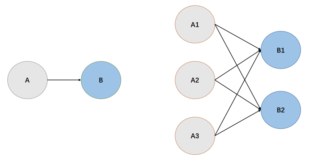 如上图所示,左半部分表示由 A 和 B 两个 SPMD 构成的 DAG (逻辑层次)。假设 A 并行度是 3,B 并行度是 2,右半部分表示把 A 和 B 按照 sharding 展开后更细致的 DAG (物理层次)。Pathways 的想法是,如果在最细致的 DAG 层次来推理和处理,工作量太大,开销很大,所以在 Client 等处只需要处理逻辑层次的 DAG 就可以。