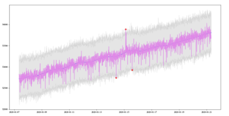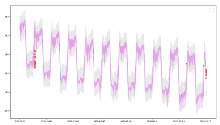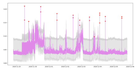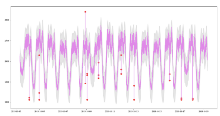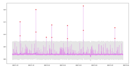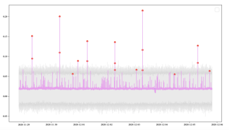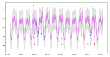 无论是基础监控指标、中间件指标、业务指标里都会出现一些不规则数据。针对这种不规则数据,优先推荐使用Tima算法。如下图是Tima算法计算不规则数据的结果。