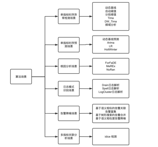 目前云智慧已有的适用于不同使用场景的算法,有单指标时序异常检测场景、单指标时序预测场景、根因分析场景、日志模式识别场景、告警降噪场景、多指标关联分析场景等。每一个场景下都有不同的算法,并且每一个算法都有其所适合的数据,如图2所示。目前应用较广泛的算法场景是单指标时序异常检测场景和单指标时序预测场景。单指标时序异常检测场景有动态基线、自动阈值、分段阈值、Tima、DW_Tima、频域分析等算法,那么针对不同的指标数据该如何选择合适的算法呢?