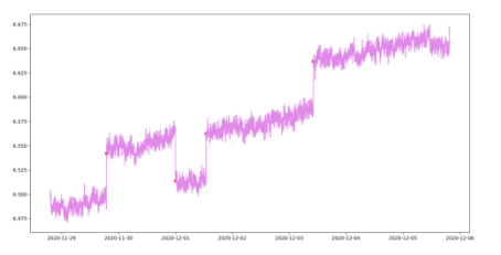 一般针对基础监控指标里面的内存使用量,中间件指标的kafka堆积数量可能会出现这种趋势周期趋势数据,该类数据的形态特点为由周期性数据与趋势性数据叠加而成,针对这种周期趋势数据,推荐使用Tima算法。如下图是Tima算法计算周期趋势数据的结果。