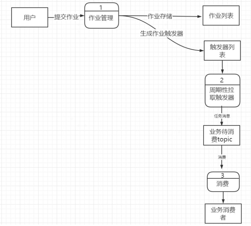 作业触发消息:指作业按照时间规则计算出的产生触发执行动作的每一条记录,包含作业主键和执行绝对时间时间戳,比如每5s执行一次任务,第5s和第10s是两个触发器。
