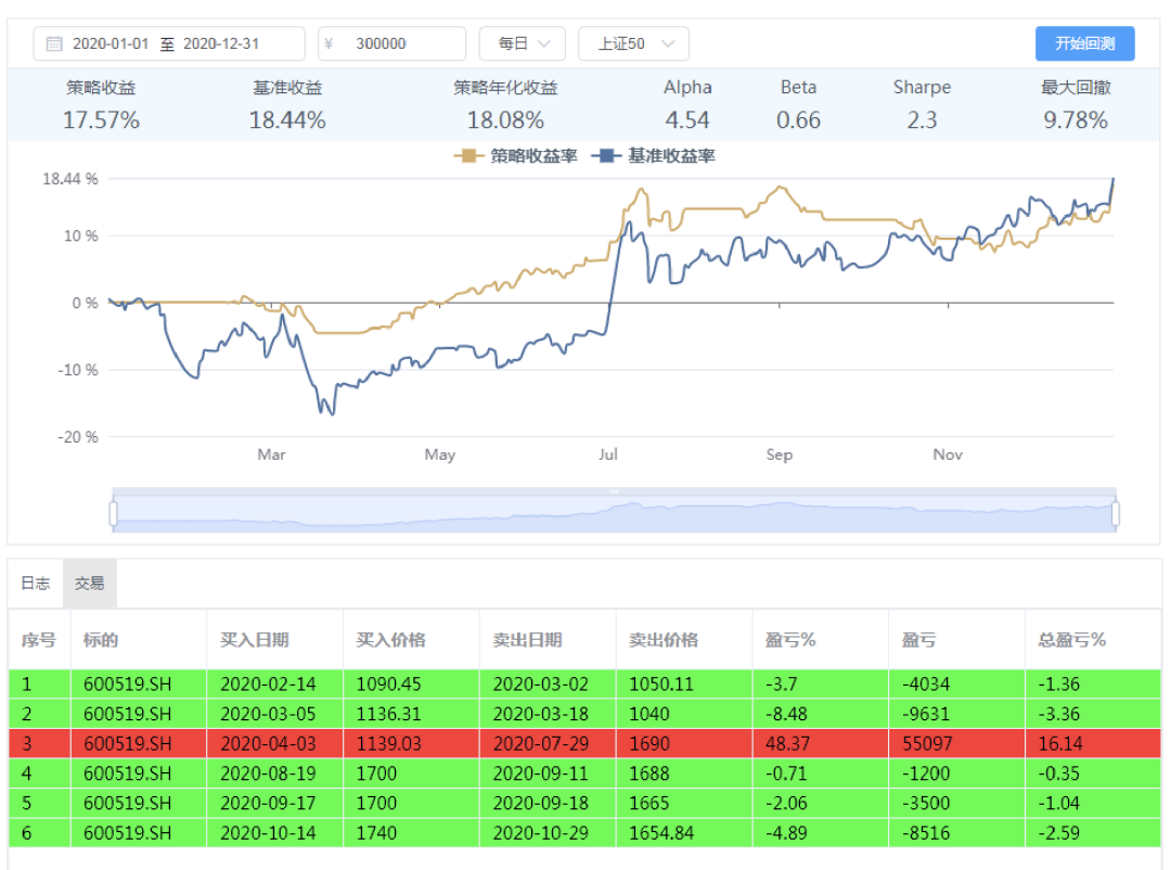 (注:股票回测是指设定了某些股票指标组合后,基于历史已经发生过的真实行情数据,在历史上某一个时间点开始,严格按照设定的组合进行选股,并模拟真实金融市场交易的规则进行模型买入、模型卖出,得出一个时间段内的盈利率、最大回撤率等数据。)