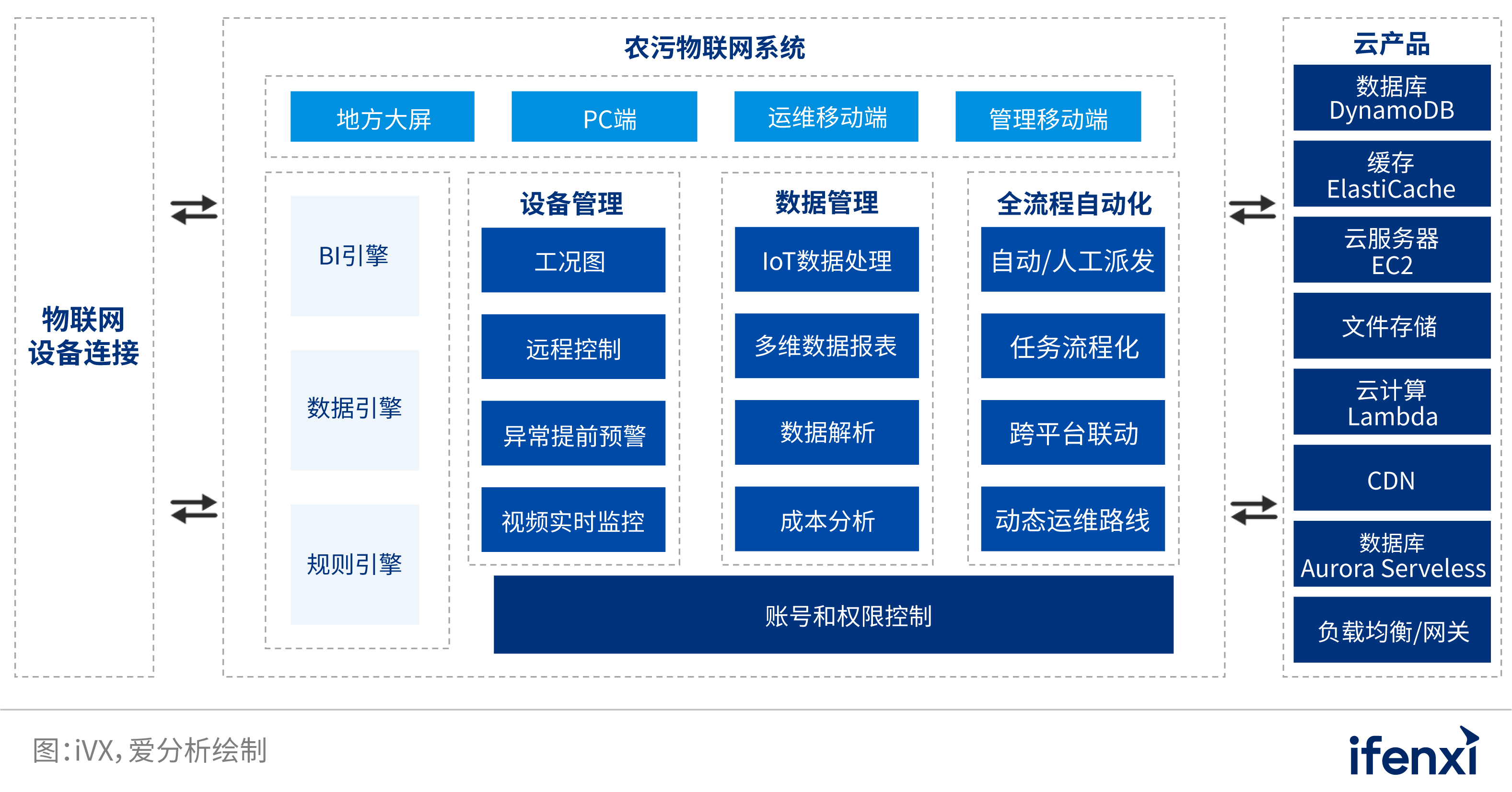 | 案例5:昆仑海岸采用通用无代码应用开发平台开发农污智慧运营平台 北京昆仑海岸传感技术有限公司(简称“昆仑海岸”)成立于1994年,致力于在环保水处理、固废处理、石油、石化及天然气等领域为企业提供硬件设施、IoT软件平台以及行业解决方案。目前,昆仑海岸已为企业提供如分散设备可预防维护管控一体化平台、污水净化业务智慧管控平台、城镇供水及管网运维智慧化管控平台、水环境以及黑臭水体治理管控平台等IoT软件平台和行业解决方案。 为开发农污站点管理通用管理平台,昆仑海岸面临四大开发难点 在进行产品研发的过程中,昆仑海岸发现在对农污进行处理过程中,站点分散,且由于设备位于地下或地面集装箱内,形态众多,使得以人工的形式进行现场巡查的时间长,成本高;因此,企业需要搭建一个平台或系统对各站点进行管理。 就目前而言,多数企业开发的农污站点管理系统结构复杂,内含多种处理工艺以及海量的数据,且需要对传输协议不同的多个传感器以及不同类型的设备的运行状态进行实时监控,不仅需要高昂的开发成本与漫长的开发周期,还需要业务人员与开发人员多次沟通业务需求,才能保证系统完全落地。基于此,昆仑海岸决定为该场景提供通用解决方案,开发农污智慧运营平台。但在开发的过程中,存在以下问题: 第一,系统架构复杂,功能繁多,开发人员需要提升开发效率。由于该平台的系统架构与功能均十分复杂,需要大量定制化开发,且平台需要支持与IoT设备数据对接,通用的表单和流程配置平台无法满足。因此,昆仑海岸的开发人员需要借助无代码开发工具代替传统的代码编程,简化技术栈,快速进行应用开发,提高开发效率,缩短开发周期。 第二,开发人员与业务人员沟通效率低,造成系统适用度低,企业需要降低开发门槛,实现“全民开发”。由于开发人员缺少业务知识,在系统开发的过程中,往往存在因不能准确理解业务需求而导致功能与需求脱节的问题,开发人员在开发过程中需要提高与业务专家的沟通效率,以提高系统的适用度。基于此,昆仑海岸需要使用开发门槛低,能够让各部门人员都能完成软件定制并交付工作的开发平台。 第三,保持开发环境与技术的统一,降低系统后期维护难度。昆仑海岸的开发团队在平台开发过程中需要有统一的开发环境,在技术选型上避免多种编程语言、技术框架、数据库对开发团队的干扰,以降低后期扩张开发团队和运维的难度。同时,开发人员借助无代码、可视化的开发工具使程序结构更清晰,提高程序本身的可读性,简化工作交接成本。 第四,打破代码壁垒,让企业管理层能够实时掌握项目进度,改善团队管理。传统模式开发模式需要使用大量的代码,企业管理层难以理解,也难以实时掌握项目进度,昆仑海岸需要借助无代码工具,让管理层不用读代码,也能直观的看到项目架构、界面样式和逻辑关系,准确把控开发进度和日常工作产出。 结合农污智慧管理平台的功能架构以及开发过程中的需求,昆仑海岸最终在低代码应用开发平台、无代码应用搭建平台以及通用无代码平台三者中选择了面向专业开发人员,无需编写代码即可快速进行开发的通用无代码平台。 基于多重考虑,昆仑海岸最终选择iVX平台进行产品开发 昆仑海岸基于自身开发需求出发,选择低代码平台主要考虑以下因素:通用开发能力,平台需要具备全场景覆盖、多平台支持;灵活性和开放性,需要满足各类UI效果、数据模型、逻辑流程可视化开发;独立部署能力,使用低代码平台开发的应用能够独立部署,易用性,公司内的开发人员能够快速掌握;可视化开发界面易读易懂,使业务人员和管理者更容易参与。最终,经过多家厂商的考察对比,选定iVX进行合作。 iVX平台定位为面向新一代全栈开发人员设计的“通用无代码开发平台”,使用者无论是否有开发经验,短期学习后都能在iVX中独立开发应用。iVX结合可视化的开发编译环境(云端IDE)、自研的图形化编程语言(含自定义AST抽象语法树)、分层的组件架构、应用多端发布和源码导出部署能力,实现全场景全系统下的无代码应用开发,并提供了应用管理、云托管和运维工具。此外iVX平台针对企业用户还提供团队协理工具以及应用数据管理工具、日志、多人开发、应用版本管理工具等。iVX针对传统编程人员,支持结合代码开发以提高传统开发模式的效率,程序员可以编写“插件/CSS/SQL语句/JS函数”,接入外部系统、数据库、自定义组件库和SDK。 农污智慧运营平台以数据为抓手,高效管理IoT设备 作为专业的物联网解决方案提供商,昆仑海岸选择与iVX合作,通过无代码开发方式开发了IoT污水智慧管控平台,以解决智慧水务及环境监测领域中涉及的设备管理与运营、集中监测与智慧大数据等问题。 图 18: 农污智慧运营平台架构 目前该平台主要应用于设备管理、数据管理与全流程自动化三个场景。 典型应用场景1:设备管理 为对设备进行管理,昆仑海岸的开发人员使用iVX平台开发了工况图、远程控制、智能化监控预警三大核心IoT模块。 工况图模块:BI引擎是使用iVX编辑器自主搭建的一个数据可视化展示和分析的便捷开发工具,可自由连接数据源获取数据信息,并实时展示成图表或设备样式让数据变得生动。该引擎不仅能在线拖拽绘制工况图,还能够直接获取IoT底层的数据进行绑定,基于此,管